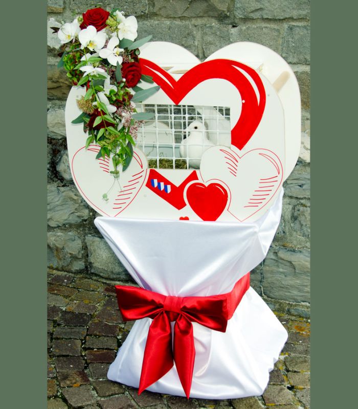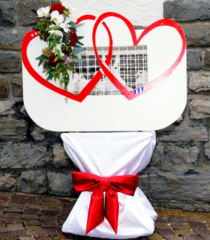 Überbringen der Glückstauben an den Festort, aufstellen des Glücksherzes inkl. die entsprechende Instruktion für die Zeremonie