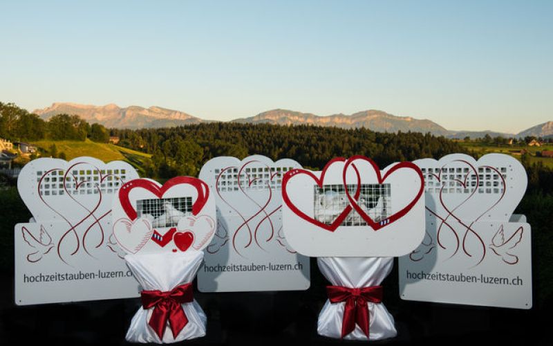 Für die Auswahl des entsprechenden Glücksherzes (Taubenkorb) steht Ihnen eine schöne Auswahl von Möglichkeiten zur Verfügung. Diese können im Hochzeitspavillon besichtigt werden oder über diese Homepage ausgewählt werden.
